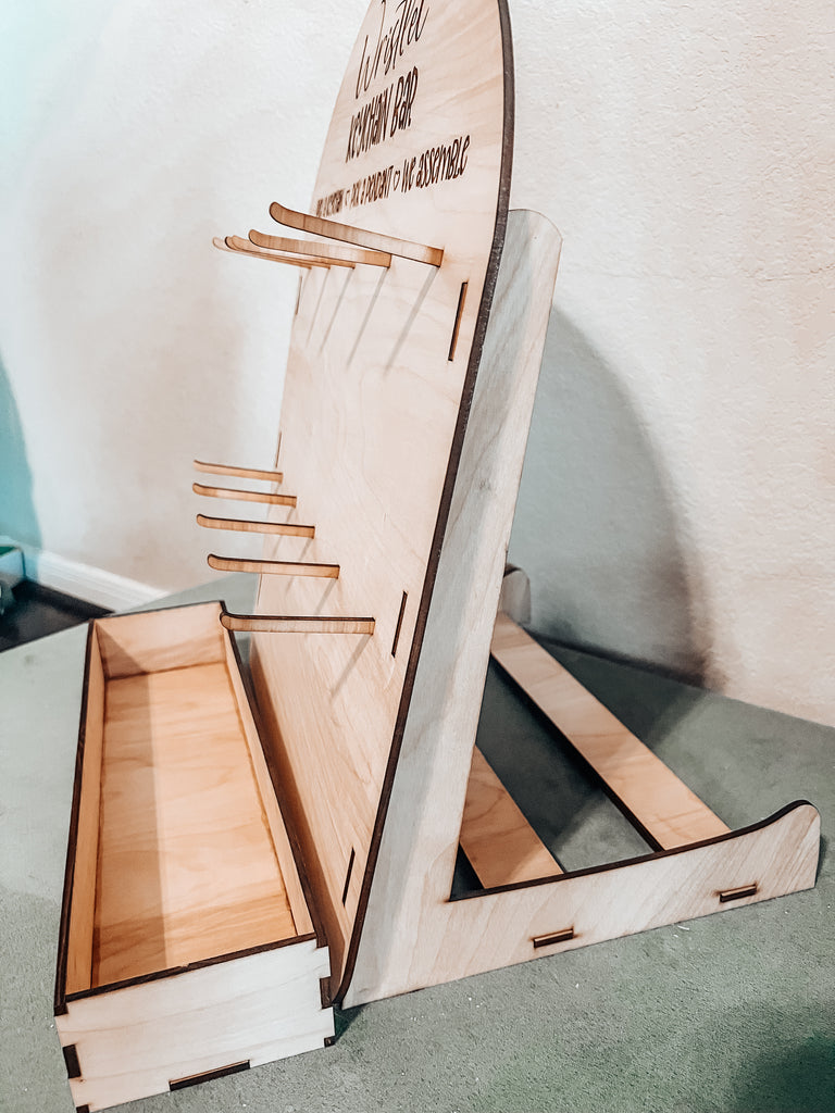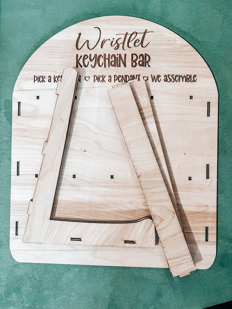 each stand is 16.5”x20” the legs behind go out 10.5” each bin for keychain add ons is 16.5x 4.5” and 2.4” deep.